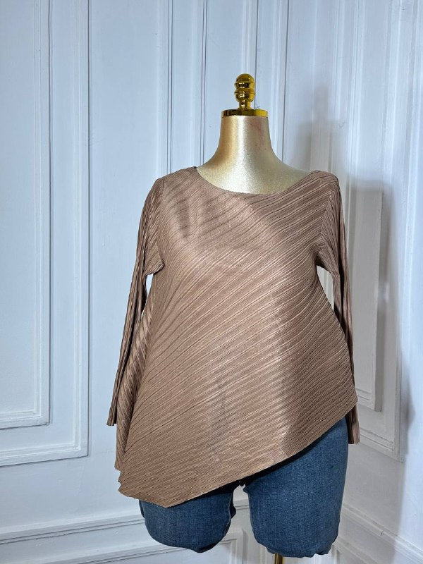 Elevate your wardrobe with the Brown Dynasty Miyaki Top, expertly crafted for a refined and timeless look. This top features rich brown hues and intricate Miyaki beadwork, offering a sophisticated texture and cultural elegance. Designed for comfort and style, it pairs seamlessly with both casual and formal outfits, making it a versatile addition to your collection. Perfect for those who appreciate detailed craftsmanship and enduring fashion statements.